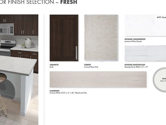 Use the fourth bedroom as a den and entertain friends and family in your large great room and dining space. Slate cabinets with marble-look white quartz countertops, backsplash, wood-look tile flooring with beige carpet in our Fresh package.