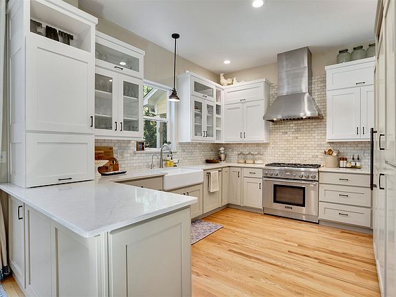 Stunning home with private studio apartment! Your oasis awaits - nestled among whispering pines, this home is truly magical. Guests will step past the babbling fountain to the foyer boasting custom inlaid hardwood and gleaming flooring throughout. Full-custom remodel complete with deluxe chef's kitchen. Marble backsplash, Quartz counters, apron sink, bar seating, soft-close cabinetry, glass doors, and top of the line professional Thermador and Sub-Zero appliances. 6-burner range with professional vent hood, slide-out microwave, and custom built-in Sub-Zero refrigerator and freezer. Dining room features built-in seating and floor-to-ceiling storage. Oversized windows frame the bright and open sun-splashed spaces. The large living room is the perfect place to relax. Curl up with a good book by the cozy fireplace. Main level study with French doors and wraparound windows make you feel like you're deep in the mountains. "Locker room" with bench seating and TONS of storage. Powder room with custom antique vanity, wall treatments, and vessel sink. Sip your morning coffee on the covered, wraparound porch. Professionally landscaped yard is a must-see! Flagstone patios, expansive multi-level composite deck, stone seating wall, climbing vines, bistro lighting, irrigated planter boxes, and an outdoor shower. Gas line run for grilling. Fully fenced yard and unrivaled privacy. Soak in the secluded jetted spa on an Autumn evening under the stars. 4-season heated gazebo is perfect for outdoor dining or would be a fantastic outdoor living room and is complete with windows, power outlets, ceiling fan, and dual infrared heaters. Relax in the serene Primary Suite featuring high ceiling, fan, and HUGE walk-in closet with windows. Spa-like private 5-piece bath with dual vanities, shower with seat, stone counters, tile floors, towel heater, and large soaking tub. Upper level with two additional large bedrooms and bath. Finished basement with two HUGE bedrooms, bathroom, and rec room. Laundry space features lots of storage. Tankless water heater for endless showers. The main home boasts 5 bedrooms, 4 bathrooms, multiple living spaces, and a private office. Need more space for family, work, or entertainment? The private studio apartment is just steps from the main home perched atop the carriage house. Soaring ceilings, 2 fans, and plenty of living space. Wraparound windows make this feel like a treehouse. Full kitchen, dining space, living room, bathroom, and bedroom area with walk-in closet. Oversized alley-load garage with private entrance, wet bar, epoxy floors, tv hookup with wall mount, bright LED lighting, dual garage door openers, and tons of storage! Additional parking behind and in front of the home. Directly across from one of the many neighborhood parks. The neighborhood trail system will take you to the lake or private dog park for residents. Close to shopping, dining, hiking, watersports, excellent schools, and entertainment! Reach out today for a private tour or for a link to the professional video tour. 12+ month rent. Lock in the rental rate with an extended lease. Tenant is responsible for utilities. First and last month's rent due at lease signing. Dogs and cats are negotiable. No smoking.