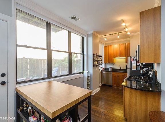 Move into the beautiful former Seville Hotel! Carefully maintained lofted 1 bed/1 ba unit in Beuna Park with the best 24'x14' PRIVATE TERRACE! Enjoy your own peaceful outdoor space in the city. Large windows offer plenty of light overlook the unit's large private outdoor space and have automatic shades. The gourmet kitchen has newer appliances, granite counters, and excellent cabinet space. The 2015 rehabbed bathroom features heated floors and floating glass shelves. Unit has hardwood floors, room for dining, and tons of storage. You can't miss the organized walk-in closet! This historic building has a common roof deck with skyline views, exercise room, elevator, additional storage, and more. Convenient location with easy access to red line, buses, lake, parks, Wrigley Field, restaurants, and nightlife. Nearby garage and outdoor rental options for parking available,
