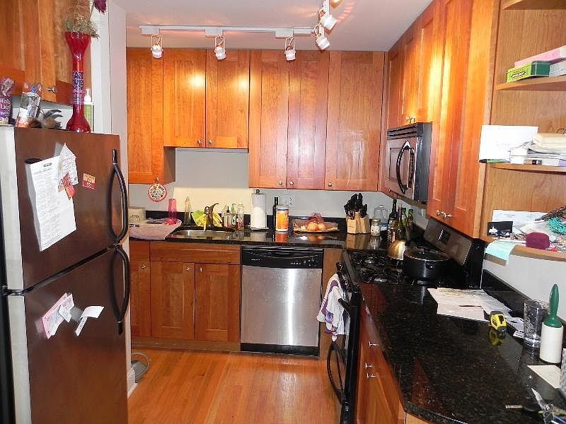 One bedroom, one bathroom rehabbed condo with hardwood floors in the living areas and plush carpeting in the bedroom. Great kitchen with stainless steel appliances, granite counter tops. Balcony and shared roof deck. Access to gym included in the rent. Small pets are OK.