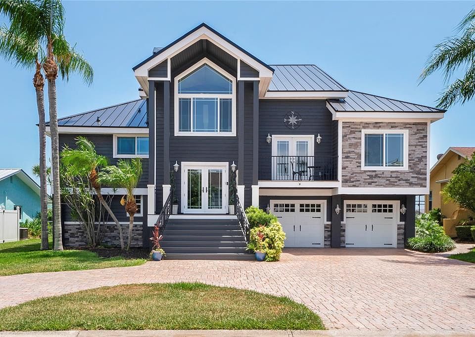 Water front luxury at its finest awaits you in this beautiful, turn key, move in ready home, located on the deep water canal with direct Gulf access. If you love to entertain - this is your home. New Trex dock and 16,000 pound boat lift, new in 2019. Beautiful spillover gas spa for quick heating, pool, tiki hut with outside bar and grill and mini fridge. A perfect place for family and friends to gather. The first floor is where your entertaining will continue, cherry bar, gas fireplace, conveniently located laundry room with a gas dryer that's staying and a full bath. Downstairs you will find the custom, temperature controlled 300 bottle walk in wine cellar. The second floor is the main living area. Master suite has vaulted ceiling, brick gas fireplace and recently renovated bathroom with steam shower. The kitchen is new 2020 and a chefs dream with high end appliances and custom cabinetry. The third floor could easily be turned into a third bedroom, home gym, playroom, office or movie room. Both balconies off the second and third floor offer great places to watch the sunsets. New tin roof, exterior paint and Trex front steps all completed in 2024. Hurricane windows and doors 2020, garage doors and openers 2020, A/C 2016, 2014. Gulf Harbors Woodlands Yacht club, club house, pool, tennis, pickle ball and boat ramp, located just down the street. Call for your private showing today.