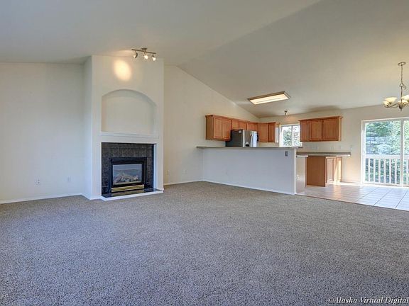 Sunny, open floor plan with cathedral ceiling & easy gas fireplace. Corian countertops with breakfast bar & stainless steel appliances. Brand new carpet and fresh paint. Master Bedroom has seperate bath & walk in Closet. Walk in house from garage! Easy living located in quiet cul-de-sac and close to Campbell Creek trail. Leasing agent is one of sellers.