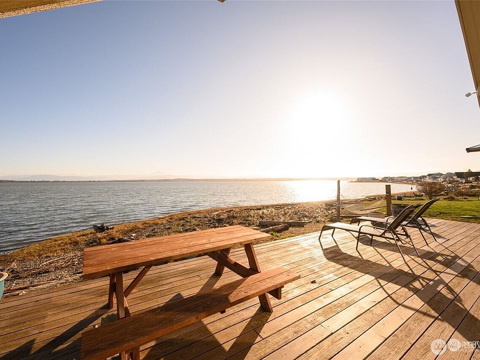 Welcome to this beautifully maintained 2 bed + open loft, 1 bath waterfront home in the desirable Sandy Point community! Enjoy fiery sunrises from the freshly stained deck overlooking 62' of waterfront with low bank access for easy kayak & SUP launch. East-facing with gorgeous backdrop of Mt. Baker & Twin Sisters, this charming, updated beach house features soaring tongue & groove ceilings, an updated kitchen w/ new refrigerator, an updated bath, and a spacious loft that accommodates 4–6. Other features include new W/D, new roof in May, newer siding & windows. Community amenities include private golf course, marina, pickle ball & tennis courts, clubhouse & pool. Operating as an active Airbnb/short-term rental with all furnishings included.