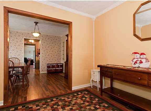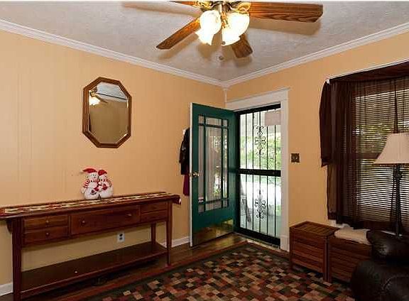 This is one of those special homes where memories are made. Located in a very nice neighborhood in Camp Taylor this home welcomes you with a porch that it is beautifully decorated with ornamental iron columns. In this nice and spacious bungalow style home you will find beautiful laminate flooring throughout the living room and formal dining room where guests and family can comfortably sit and dine. These rooms also feature ceiling designs, crown molding, ceiling fans, nice lighting fixtures and large windows that bring in plenty of natural light. The eat-in kitchen is spacious and has a lot of character. This kitchen features custom cabinets for plenty of storage, built-in bookcases and plenty of space to create delicious meals for your family and friends. Windows all around create a bright and airy setting for the gorgeous Great Room. This room is the heart of this home offering beautiful laminate floors, exposed high ceilings and stone fireplace. The light pours down from skylights placed on the high ceilings and the touch of wood paneling makes this room nice and cozy. The sliding doors take you to the deck that overlooks the large fenced-in backyard and shed. The bedrooms are spacious, inviting, and extremely comfortable. These bedrooms feature built-in bookcases, wood paneling, exposed brick, pocket doors, crown molding, and exposed high ceilings. There are two full bathrooms conveniently located on the first and second floor. The full bathroom on the first floor is located nearby one of the bedrooms. The second floor bathroom is elegant and tastefully done. It features an exquisite vanity, beautiful tile all around, crown molding, double shower, beautiful pedestal sink and modern light fixtures. The house also features an unfinished basement, central air conditioning, gas forced air heat and a great location close to retail stores and restaurants, Poplar Level Rd and Watterson Express Way. Call for an appointment today!