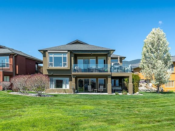 GORGEOUS 3BD/4 BATH + DEN WALKOUT RANCHER w/ SPECTACULAR VIEWS of the GOLF COURSE, OKANAGAN LAKE, MOUNTAINS & MISSION HILL WINERY! Located on one of the largest lots in a prestigious gated community, this home boasts an extra long 40' driveway, double car garage PLUS an additional golf cart garage & charming courtyard! The stunning great room design & large wrap around covered/uncovered deck w/new frameless glass railing & duradek, provides privacy from neighbours & STUNNING VIEWS of the 15th GREEN & LAKE! PERFECT FOR ENTERTAINING! The custom designed kitchen w/large island, includes new quartz countertops & backsplash, new S/S appliances w/gas stove, wine fridge & pantry. The spacious dining area w/window seat & the lovely living room w/gas f/p, are both encompassed by large windows w/new high end custom remote blinds. The spacious primary bedroom hosts a walk-in closet, 5 piece ensuite w/heated floors & french doors to the sundeck. The main floor, w/handcrafted hardwood flooring throughout, also hosts a small den w/built in desk, main floor laundry & easy access to the garage. Downstairs offers a bright family room w/VIEWS & access to a private covered patio PLUS, 2 more LARGE bedrooms, a flex space for an additional den or exercise room, 2 bathrooms & loads of storage space. Additional features include updated garage door & windows, HWT, new washer/dryer, built-in vacuum, gas BBQ hookup, phantom screens & much more! Enjoy the Clubhouse amenities. RV storage available.