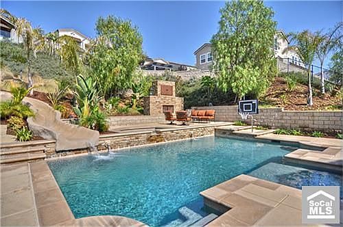 Resort living everyday! Situated in the Vista Del Verde community of Foxfield. Beautiful home features formal living and dining rooms, down stairs bedroom with full bath, double sized family room with room for pool table, gourmet kitchen, breakfast room and bar. Upstairs bedrooms are all well appointed including a wonderful master suite, teen room and office niche. Everything has been done with designer touches of granite, stone, travertine, custom paint and more. The grounds are spectacular with rock pool, water fall and slide. Outside fireplace for romantic evenings, oversized covered bar with BBQ, refrigerator, television and speakers make this the ultimate backyard playground. Located in the heart of Yorba Linda with shopping, dining and award winning schools only minutes away.