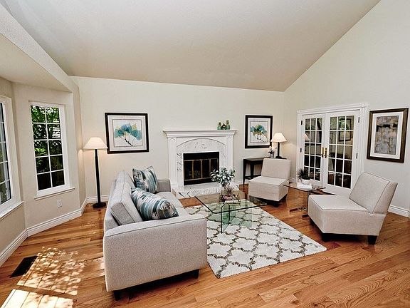 A STUNNING HOME - BEAUTIFUL UPGRADES!! Glistening hardwood floors and new dual pane windows throughout entire home, dramatic entry with vaulted ceilings and large skylight that lets in lots of natural light, open & bright floorplan. The living room features a marble faced fireplace with custom white wood mantle and french doors leading to the private and secluded backyard. The remodeled kitchen features custom cabinets, granite counters, center island with pendants,recessed lighting & high end appliances including 6 burner gas stovetop. Large master bedroom and remodeled master bath with custom cabinets, granite counters, separate tiled shower w/custom glass door & new six foot bathtub.The private and serene backyard is an ideal retreat with mature trees that give lots of shade, aggregate patio & beautiful sunny pool with waterfall plus a separate free standing spa and a grass area surrounded by lush landscaping. Great location in Deer Ridge Estates -A REAL GEM!!