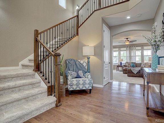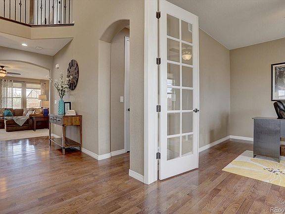 WELCOME HOME! Stunning View Home nestled on one of the best corner lots in the Terrain Community! Enjoy amazing sunrise views from the oversized covered back balcony and relax with a cup of coffee or a nice glass of wine. This home has everything you can dream up! Large open floor plan with gourmet kitchen which includes granite counters, SS appliances, double oven, upgraded cook top, butler's pantry area and walk-in pantry. You can entertain your guests at the large island/breakfast bar which opens up to the great room where you can enjoy a cozy fire by the picture-perfect viewing windows. Leading up from the dramatic staircase you will find a four bedrooms. Enjoy additional amazing views from the large primary suite with tray ceiling and relax in the spa-like bathroom. Adjacent to the 5-piece bathroom, you will find a huge walk-in closet that connects to your dream laundry room with plenty of storage. This home has newer carpet (stairs & upper level installed within the last 6 months) and beautiful hardwood flooring throughout! The exterior has been repainted in the last 6 months as well. In the back yard you will find a garden and artificial turf with a water feature. Terrain amenities include 2 community pools, recreation center, tennis court, parks, trails and even a dog park! Short drive to Downtown Castle Rock, I25 and approximately 30 minutes to DTC.