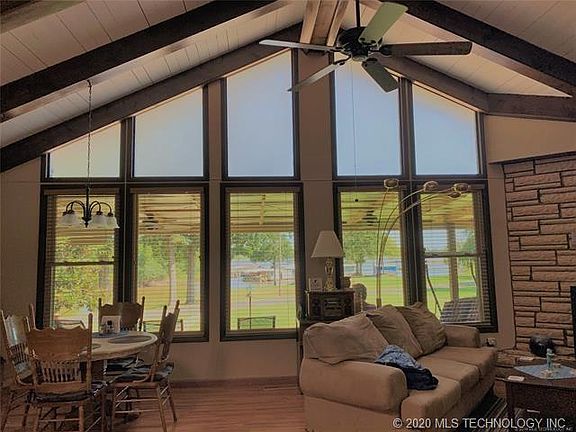 Beautiful Waterfront home at gated Sycamore Bay w/2 slip boat dock! The vaulted ceiling, skylight and front windows allow an abundance of natural light in this open concept home. Year round lake views from both living areas, dining, kitchen and the spacious covered front porch. Enjoy 2 masters with private baths on opposite sides of the home, plus 2 more beds and a bath in the middle. A 2 car detached garage with covered porch between for more family fun and living! I-40 easily accessible.