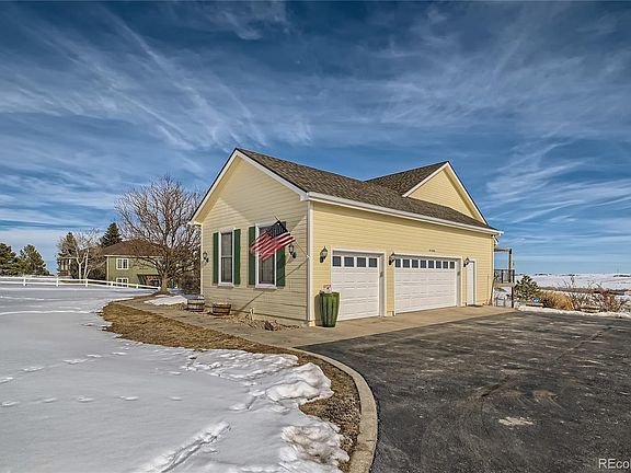 Your dream home awaits! This beautiful ranch walk-out is situated in a peaceful, serene country setting with east vista views & front range views; only 10 minutes to downtown Parker. Privacy & tranquility with all the convenience of urban living! Features 5 beds, 3.5 baths, 3160 finished SF on 1.7 acres, fenced cul de sac lot backing to undeveloped private acreage, this property has it all….including newer sprinkler system, electronic invisible fencing, video surveillance security system! Lovingly cared for, meticulous maintenance & numerous home improvements in the last 5 yrs; settle in & enjoy right away. Beautiful hardwoods & custom sculpted carpet compliment warm color palettes on walls & high ceilings. Spacious formal areas flow into country chic eat-in Island Kitchen-with conveniently located side wet bar-with newer SS appliances, painted & glazed cabinetry, tons of natural light from the large individual & bay windows. Informal dining nook overlooks large composite deck with overhead pergola & deck lights + sunscreen shade, plus multiple tiered perennial flower gardens. Main level boasts a large Primary suite w 5-piece bath, W/I closet, 2 secondary bedrooms connected by a Jack-n-Jill full bath, a spacious laundry room w utility sink & refinished cabinets. Walkout basement has 1200+ FSF of living & sleeping space - 2 beds, a full bath, plus 2 add'l great rooms w French door access to patio, dog run & gardens. High ceilings w fans, large windows & natural light, big rooms w flexible living & entertaining spaces. Adjacent is 800 SF unfinished area for extra storage & housing HVAC systems. Space galore for cars, trucks, RVs in the OS 3 car att'd garage, plus storage alcove & service door to paved & newly sealed driveway….bonus is 100’ additional paved parking pad next to main drive. So many features, so much space, so much privacy & convenient to Parker, med centers, shopping & freeways. CALL ME for a private tour before someone else buys your dream home!