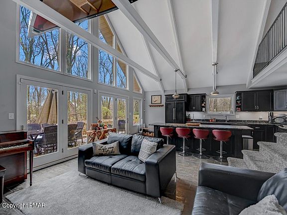 Property is Under Contract and considering back-up offers only at this time. This charming, modern chalet is your gateway to the 5-star private Lake Naomi Club, with it's 3 lakes, 7 beaches, 2 outdoor pools, 56,000 sq ft rec center with indoor pool and fitness center, tennis courts galore, and year-round activities and events for all ages. The property boasts an open concept main living space with cathedral ceiling, picturesque window wall, and pellet stove, custom eat-in kitchen with modern appliances and seating for 8, radiant flooring in bath with custom walk-in shower and double sinks, and expansive loft. Furnishings AND boats are negotiable!