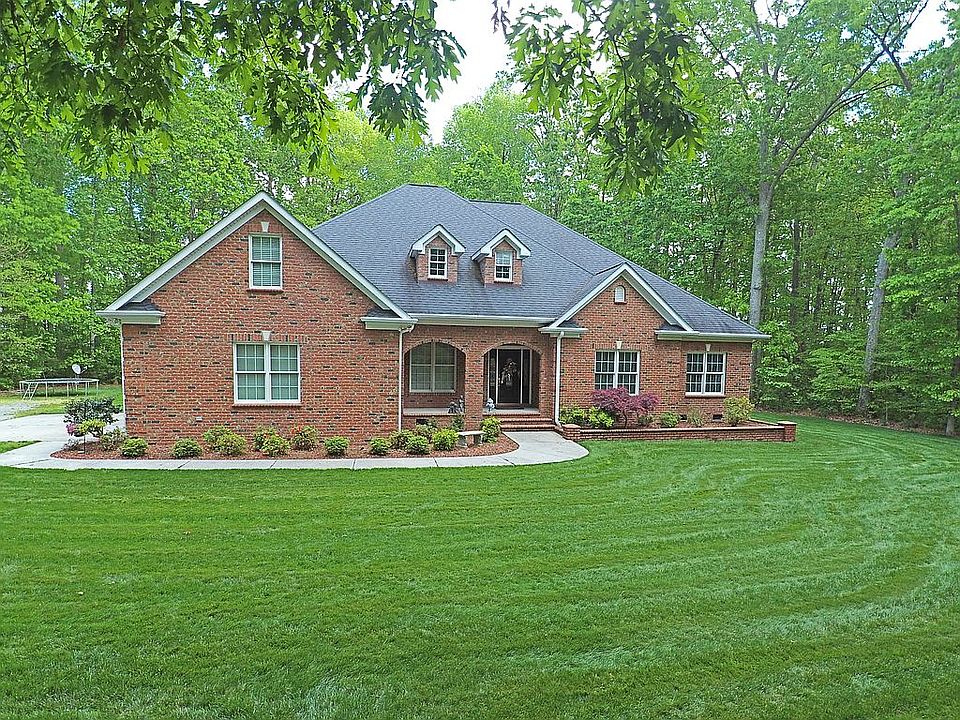 Beautiful Custom All-Brick home on private 3 acres in North Mebane. Warm Brazilian Cherry floors welcome you into formal entry, living & dining. Grand stone fire place with gas logs. Beautiful details including crown molding, dining room columns & wainscoting, hardwood & ceramic tile flooring, recessed lighting, high end stainless kitchen appliances with Granite counters. Newly renovated Master Bath w/Glass & tile shower, whirlpool tub, large walk-in closet. 2nd floor Bonus Rm, walk-in attic w/400 sqft floored space for storage or future use. Covered front and back porches, oversized 2-Car Garage. Seller has provided Features List for full property details that you will want to see!