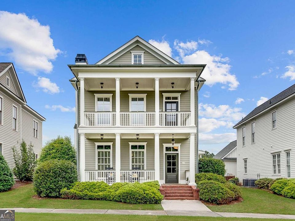 Experience the charm of Southern living in this stunning Charleston-style home, boasting dual front porches overlooking the park-like greenspace. Ideally situated within walking or golf cart distance from Downtown Covington, this home places you at the heart of vibrant restaurants and shopping. This well-maintained property is nestled in a delightful neighborhood and features a flowing floor plan perfect for modern living. The eat-in kitchen offers both style and functionality, with ample cabinetry, granite counters, recessed lighting, and the laundry room just around the corner. Oversized primary suite on the main level is adorned with coffered ceilings, and opens to the large screened porch as well. The suite includes a luxurious bathroom equipped with a soaking tub, tile shower, double vanities, and two expansive walk-in closets. Large windows throughout the home ensure a bounty of natural light, complemented by plantation shutters on the main level for added privacy and elegance. The main level also features a large screened porch with vaulted ceilingsCoan ideal spot for relaxation or entertaining. A two-car detached garage at the rear adds convenience and storage. Upstairs, you'll find three additional bedrooms and a full, tiled bathroom with bath and shower. A pleasant landing at the top of the stairs provides access to the upper-level rocking-chair front porch, offering a tranquil retreat. DonCOt miss the opportunity to make this exquisite home in Covington your ownCoa perfect blend of comfort, style, and convenience.