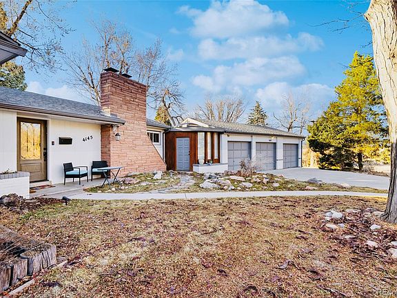 Welcome to this beautifully updated Mid-Century ranch nestled in the sought-after Bel Aire neighborhood of Wheat Ridge. This home effortlessly blends timeless Mid Century charm with modern upgrades, offering the perfect retreat just minutes from Downtown, Golden, and the mountains. Step inside to discover an inviting, wide open living area filled with natural light. The spacious living room features a stone fireplace, perfect for cozy evenings. The layout flows seamlessly into the dining room with custom, handmade Saltio tile and into the sunroom with two large skylights, creating a bright and airy space ideal for entertaining and relaxing. Into the kitchen-complete with the robust, handcrafted original cabinets, a double oven and range, a custom Samsung Bespoke fridge. Just off the kitchen, an oversized utility room offers additional storage, W/D, spare freezer, and utility sink.The private primary suite provides a tranquil escape with a generous closet and an ensuite full bath, while two additional spacious bedrooms share a beautifully remodeled hall bath. The bathroom “double-vanity” connected-but-separate style layout creates a seamless flexibility for any configuration. Enjoy Colorado’s four seasons in your backyard oasis! A stone patio invites outdoor dining and relaxation, while the mature apple tree, lush landscaping, and garden space add to the home’s charm. The fully fenced yard provides plenty of space for pets and play. A Rare 3+Car Garage and circular Driveway provide convenient access and extra parking—perfect for guests or recreational vehicles. As well as a trailer Pad! In addition the home has: Newer vinyl windows. New Electrical Panel. New Dual-zone furnaces (2023), Newer flat roof (2023), and new sewer line (2023). Located in a tight-knit community, this home is a walk, bike, or short drive away from local parks, Clear Creek Greenway, recreation centers, shopping, and dining. This turnkey Mid-Century home is ready for its next chapter with you!