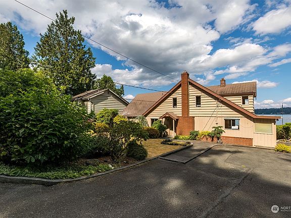Experience waterfront living at its finest in this 4BR home nestled on Erlands Point. Approx. 75ft of prime eastern exposure, no bank waterfront with panoramic views of Dyes Inlet. Great open floorplan w/ high ceilings & walk around loft area overlooking the living room & views from nearly every room. Primary bedroom is spacious w/ en-suite & located on the main level. Tons of storage w/ built-ins throughout. Nat gas heat & f/p. Additional guest house or hobby area w/ .75 bath & built in bar. Very conveniently located, and close to Hwy 3 & all amenities. HUD home, sold as-is.