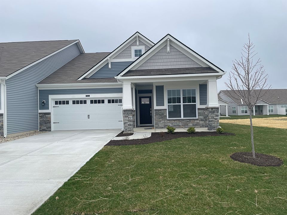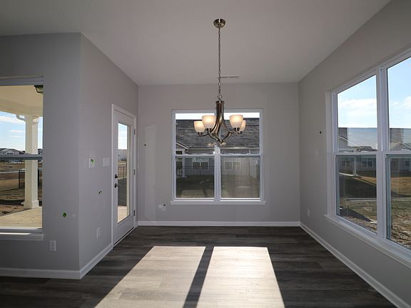 This paired home showcases 2 bedrooms, 2 bathrooms, an open-concept floorplan, and a 2-car garage. The front of this home features a large covered porch. Inside, you will find a secondary bedroom and a full bathroom. The foyer opens up to the kitchen, dining nook, and gathering room. This kitchen includes our stainless steel appliances and a center island. The attached dining nook is great for hosting with direct access to the veranda. Back through the gathering room, you will find the doorway to the owner's suite. This suite comes with a private bath that includes a double-bowl vanity and a walk-in shower. Take advantage of our low-maintenance living with this home!