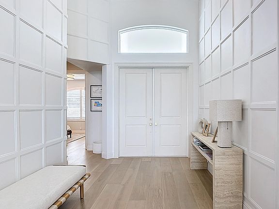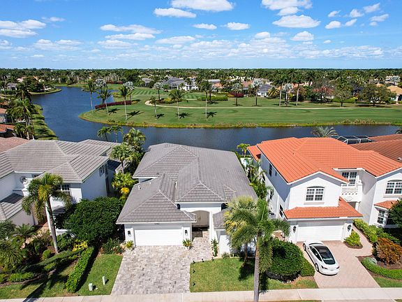 Spectacular lake and 9th hole tee box views! This bright & completely remodeled 3 bedroom + office,, 3.5 bathroom has been renovated with high attention to detail! No stone left unturned with all the finest features. Chefs kitchen with Bertazzoni appliances, engineered white oak floors, marble bathrooms, interior and exterior Lutron Casetta lighting, finished garage with air conditioning and Tesla charging station, enlarged driveway! The list goes on and on! Step outback and enjoy breathtaking lake and golf views from newly refinished saltwater pool with sundeck and new pavers! New roof and complete impact windows!