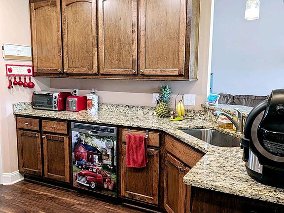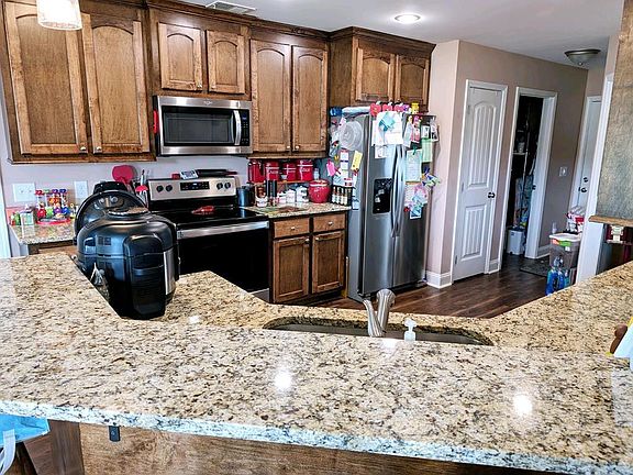 Take a look at this beautiful brick home, offering 4 bedrooms and 2 bathrooms on a spacious partially fenced 1-acre lot. This home boasts a breakfast bar in the kitchen, a fireplace in the living room, and screened-in back porch with an extended patio! The master bedroom features double sinks, a large walk-in closet, with separate tub and shower. The kitchen includes a pantry, custom-built cabinets, and stainless steel appliances. Enjoy the added bonus of NO CARPET and additional storage space in storage building and a 30x30 carport. Great rural location less than 10 mins from shopping in supportive, military friendly neighborhood.