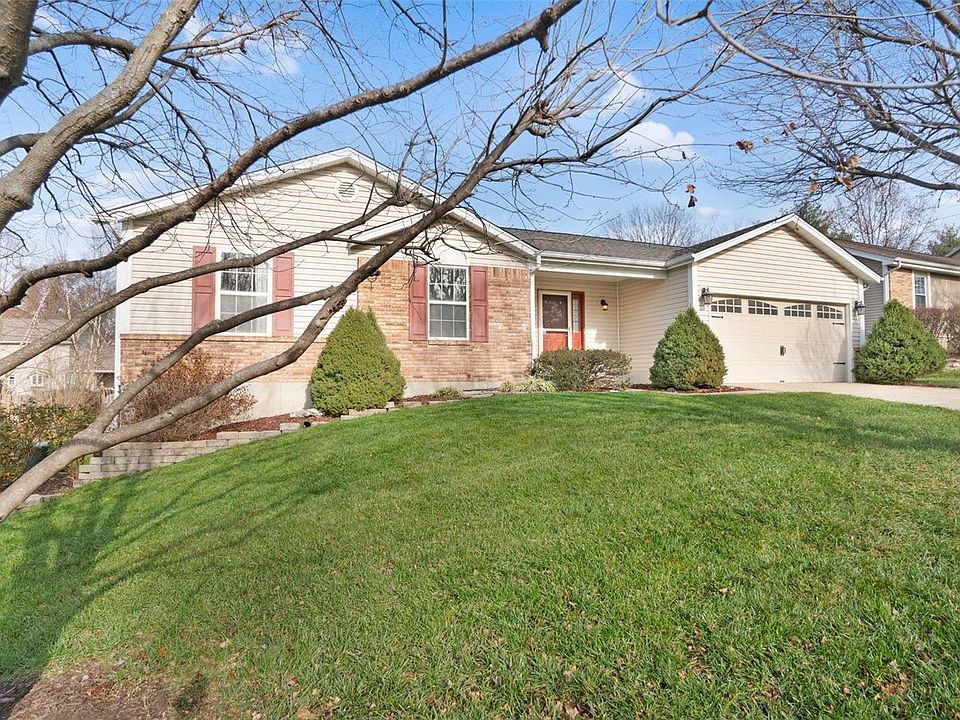 Amazing Opportunity for a 3 BR/3 BATH RANCH style home in Stafford Place II Subdivision. This small enclave of homes is in a Great location within the Francis Howell School District close to the Katy Trail, all highways dining & shopping! Exterior includes irrigation system, 2 car garage w/carriage style doors, beautiful landscaping in front & back. Step inside the entry foyer & be greeted w/a vaulted ceiling, wood burning fireplace, tons of natural lighting & an open floor plan. Breakfast room off kitchen w/bay window leads out to the covered patio & fully fenced backyard. Main floor laundry off kitchen (fridge, washer & dryer to stay) Master suite w/walk-in closet & full bath including sep tub & shower. 2 addl bedrooms & hall bath complete main level. Lower level finished w/huge rec area, full bath & kitchenette perfect for addl living quarters or entertaining. Newer AC (2023), water heater (2021), siding & shutters (2018), laminate flooring (2018). 1 Year Home Warranty Included!