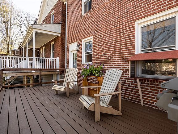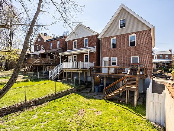 Lovely light-filled home in the heart of Greenfield with off street parking and a fenced in level back yard. Walk to Greenfield Avenue business district and Schenley Park! Covered front porch leads to the tiled foyer beaming with natural light and convenient half bath access. Decorative fireplaces in the living room and dining room. The galley kitchen opens to the 20x10 ft deck and back yard access, perfect for four-legged friends. On the upper level, the stairs open to a wide hallway with access to the four bedrooms as well as the full bath. Spanning the length of the house is a large, carpeted attic room (unheated) that is accessible from one of the bedrooms on the second floor. Unfinished, walk-out basement hosts the laundry and plenty of room for storage. Newer Roof, newly insulated attic. Minutes to Three Rivers Heritage Trail, Oakland, Squirrel Hill, 376, downtown.
