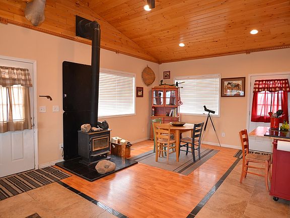 Country living at it's best! This amazing home on a stunning view lot is the perfect getaway if you enjoy peace & quiet & sunsets from your covered deck. Metal roof, log siding with beautiful tongue n groove ceilings, laminate and tile floors & a gorgeous vaulted, open great room. Gated entry ''Blue Ridge Ranch'' fenced & cross fenced complete with arena, hitching post & dog run. Corner lot so you can access your property easily. The 36' X 36' workshop with 12' door, insulated and heated with wood stove, workbench and air compressor make it the complete man cave. Horse property with over 60 trees, private well, shed, RV parking with power & RV dump. Must see!