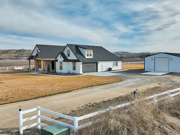 Don’t miss this stunning custom-built modern farmhouse on 1.5 fenced acres near the scenic Snake River! Tucked away near the end of a private lane, this nearly 3,000 sq. ft. home offers spacious, comfortable living with high-end finishes throughout. A 30x50 detached shop provides ample space for storage, projects, or even a game of hoops in the summer. Plus, there’s RV and boat parking for all your outdoor adventures! The property also features an attached 24x24 garage for even more storage and convenience. The beautifully landscaped yard includes a sprinkler system, making maintenance easy. Enjoy the peaceful charm of Owyhee County with no HOA restrictions. The secluded upstairs bonus room with a closet and full bath is perfect for guests or extra living space, while the main-floor office (or fourth bedroom) with built-ins and large windows adds versatility. Financing options include an assumable VA loan on $400K at 5.6%. HURRY!