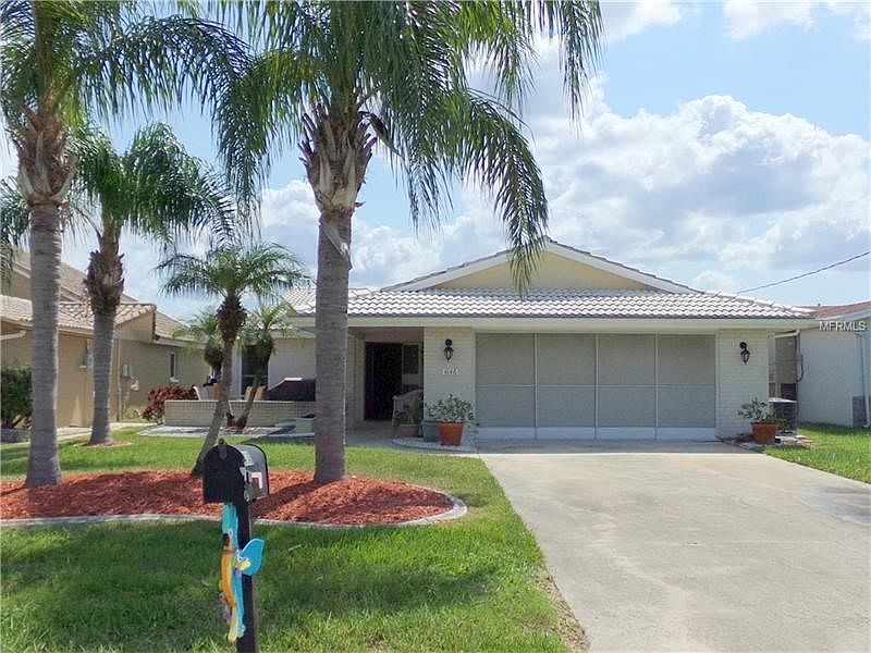 Island living at its best without the island!! This 2 bed, 2 bath, 2 car garage home has been updated for the Jimmy Buffet in all of us! Relax in the family room or screen and vinyl lanai overlooking the canal! Dolphins,& otters have been known to come to visit! See the sunset from your heated pool, on the new dock or on the open patio. Fish from the floating dock! Very open and spacious! The home has ceramic tile, carpet, kitchen nook, great room with bamboo hardwood, open kitchen, dw & refrig 2yo,new range & micr new water heater, new pool vinyl liner,10,000 lb boat lift w/remote, new floating dock,carpet in bedrooms is only 2 yo, new A/C installed 2012, new a/c duckwork done 2015, plumbing moved from slab to overhead 2008, front patio for shade, and so much more! The best "On the Water" living! Won't last-- See now!!