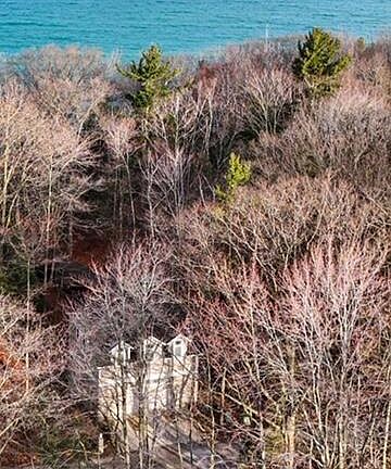 This Lake Michigan beauty is an architechtural masterpiece. Two primary dunes are connected by a covered bridge, a two story garage on one end and the main residence on the other. The builder/owner considered functionality as he constructed a home built for family, friends, and comfort. First, an elevator in the finished garage takes you to the apartment that has been used as an office, guest house, rental. It features a bedroom, bath, kitchen, living room. From there you walk out to the bridge that leads you to the main event. Upon entering , the views are foremost. From all west facing window/walls you see the big lake at its finest. Blues, greens and in between. Magnificent sunsets. Next you notice the stone fireplace that soars from floor to ceiling. This fireplace is shared in the p primary bedroom suite. A private balcony, stone walk in shower and soaking tub are included in this bathroom as well. Back to living room, a loft library and two craft rooms (or bedrooms) add dimension to the open floor plan, all capturing views of the lake. The gourmet kitchen is also part of this concept with a coffee balcony, walk in pantry and wine bar. A guest bedroom and bath completes the main floor. Downstairs your guests will appreciate the full kitchen, two bedrooms and bath, a rec room and a home movie theater. Access to the clean sandy beach and the 150 ft of private frontage from this level as well.