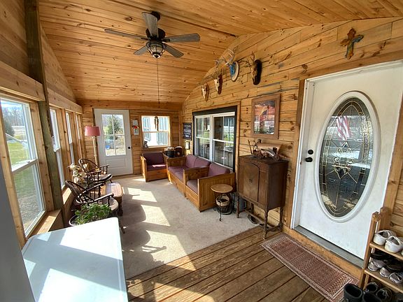 The most beautiful and functional 21 acres you will find. This property is a homesteader's dream! 10 acres of tillable or pasture ground, fruit trees, stocked pond, garden, Sandstone Creek, green house, 8 acres of woods for hunting, gun range, and tons of livable square footage. Over 2300 square feet on the main floor featuring 3 bedrooms, 2 full bathrooms, updated and remodeled kitchen, dining and living room. The poured walls in the basement encompass another 2300 square feet with 3 more bedrooms, another full bathroom, storage space, utility room and egress windows to your hearts content. Whether you sit on the newly added front porch or one of the decks, the view will be breathtaking and the setting quiet as you overlook your dream property admiring wild life, sunsets and sunrises.