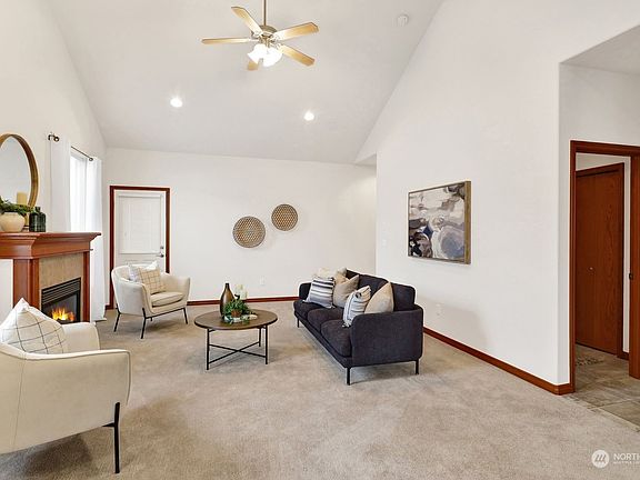 This beautifully maintained, single-owner 3-bedroom, 2-bathroom rambler has been lovingly cared for since its construction. The open floor plan offers vaulted ceilings and hardwood floors, while the modern kitchen is equipped with granite countertops, cherry cabinets, stainless steel appliances, and a spacious walk-in pantry. The primary bedroom includes a walk-in closet and an ensuite bathroom with a double-sink vanity and walk-in shower. Enjoy the warmth of the gas fireplace or unwind in the fully fenced backyard. Additional highlights include 9' ceilings, new exterior paint (2024), and a 2-car garage with finished walls, fresh paint and trim. Near I-5, shopping, restaurants, medical facilities, walking trails and more. Move in ready!