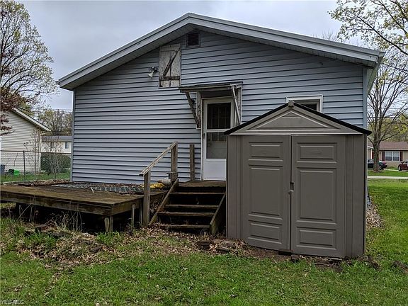 This is a Short Sale Opportunity, great potential on this Ranch Home with awesome front porch to sit on. Home has 2 bedrooms with wood flooring, 1 large bathroom, Awesome sized Living Room with wood floors and pine wood ceiling & ceiling fan, Dining Room is open to Kitchen with Eating breakfast bar and great layout for cooking and serving! Home has Newer High Efficient Furnace, Newer On Demand Hot Water Heater, and newer Plastic Plumbing, Newer Vinyl Siding on the front and newer porch soffit, Newer Vinyl Windows, Newer Metal Roof, some updated wiring with more needed to be updated. Detached Shed is in need of repairs or removed from premises. 1+ oversized Garage in need of repairs and exterior coverings. This home will not go FHA regular financing, it would need to be a renovation loan due to some floor coverings needed in Dining room and electrical repairs, handrail to basement, some exterior trim coverings needed, garage repairs and miscellaneous work like rear deck and old shed removed or repaired. Seller will do no work on this home, so don't ask, again, it is a short sale, so patience is a must. THIS IS A SHORT SALE! NO REGULAR FHA NOR VA loans due to present condition of the home; WOULD NEED TO BE CASH, CONVENTIONAL FINANCING OR RENOVATION LOAN ONLY! Fireplace in previous listing & chimney have been removed. SUBJECT TO SHORT SALE LENDER APPROVAL by Sellers Lender as well as Government approval of the short sale since this was a government backed loan originally.