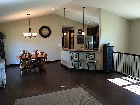 Captivating living room greets you and offers gas fireplace for ambiance, vaulted ceiling, custom window treatments. Sleek kitchen features top of the lines amenities; granite countertops, wrap around breakfast bar and stainless steel appliances that stay! Traditional dining area right off the kitchen. Master suite is located on other side of the home and has plush carpeting, windows that overlook private backyard, walk in closet plus an additional closet. Spacious master bath with dual sink vanity and oversized standing shower. Also included on the main level is well sized bedroom, full bath and laundry room. Put the finishing touches on the completed lower level. Drywall and trim work are already done, just need to pick out the flooring you want! Lower level displays large rec room with daylight windows, 2 bedrooms and full bath.