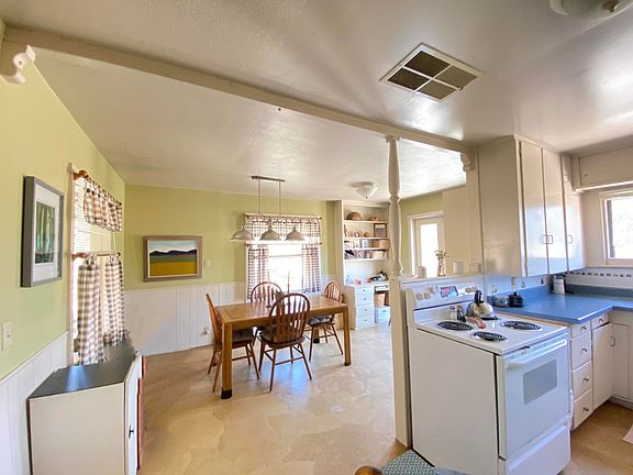 Great Springville cottage under a canopy of oak trees. Charming 2 Ed room, 1 bath home with views of the mountains to the North. There is a walk-out basement with tons of possibilities. Outbuildings include a detached garage/shop and another building that is enormous and could be a shop/barn/ADU? The acreage is adjacent to a cattle ranch so it looks like it goes on forever.