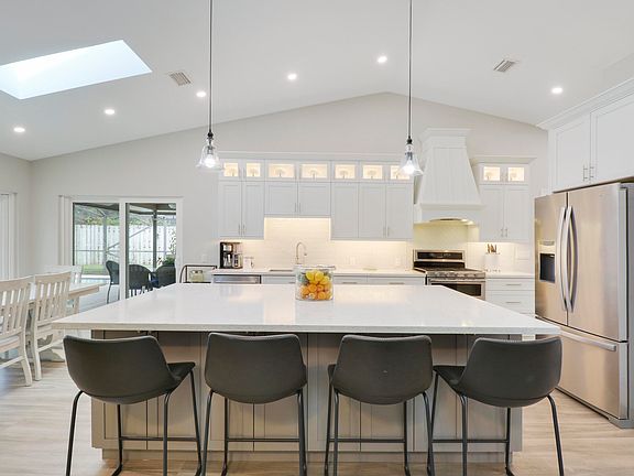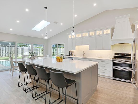 This beautifully renovated home features one of the best locations in Northern Palm Beach County. From the moment you step inside, you'll be greeted by an open and inviting floor plan that seamlessly blends contemporary style with classic charm. The spacious living room features plenty of extensive natural light, making it the perfect place to relax and unwind. The gourmet kitchen is a chef's dream, with top-of-the-line stainless steel appliances, custom cabinetry, and gorgeous quartz countertops with a 8 x 5 center island. Other features include impact windows, a large corner lot with screened pool, room for a boat or RV and a fully fenced rear yard. The roof was replaced in 2023 and all major renovations from 2020. No HOA!