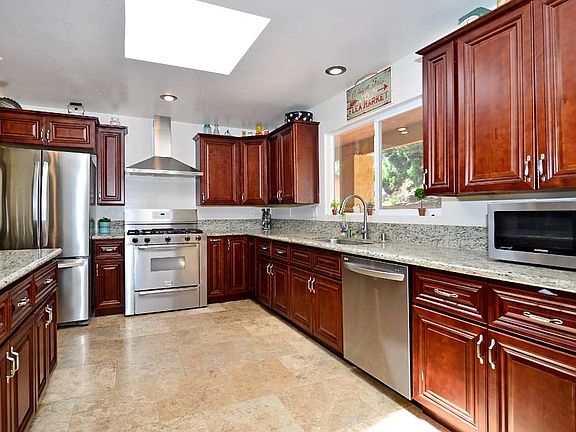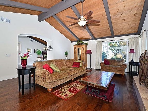 Revel at the stunning 12-ft exposed beam ceilings, warm finishes, and open, versatile floorplan this beautifully remodeled Mt. Helix home on 1/2 lot has to offer. Designed to welcome both intimate and large gatherings, this is an entertainer's dream home featuring a large patio and pool area, an open gourmet kitchen, lots of parking, and French doors seamlessly connecting the indoor and outdoor living spaces.