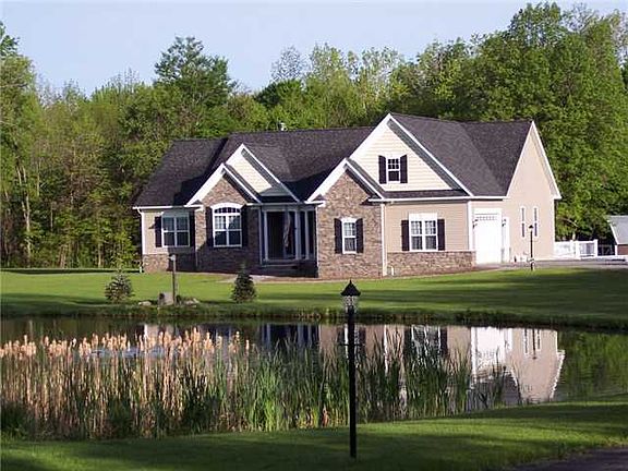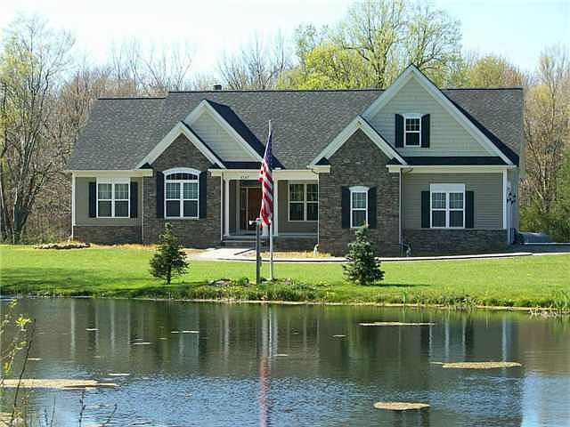 This 2400+ sq ft Ranch is a must see! 6 year old stunning home is situated on a 21 acre wooded lot with a stocked pond on the approach. Cherry kitchen includes jenn-air and stainless steel appliances, granite counters and ceramic tile. Formal dining room has hardwoods. Delux master suite with attached nursery or office. Master bath has whirlpool tub and tiled shower. Step out your back door and enjoy the above ground pool and relax on your large beautiful patio surrounded by woods.