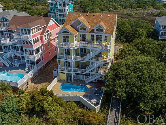 Welcome to your island paradise, Bay Breeze! This soundfront haven offers more than just a retreat; it's an investment in the life you've always dreamed of. In 2023 alone, Bay Breeze achieved a remarkable rental income of $141,646, showcasing its incredible potential. Step onto the boardwalk with private access to a sandy soundfront beach, perfect for windsurfers, kiteboarders and endless water adventures. Relax and unwind on three levels of decks, where spectacular sunsets paint the sky with vibrant hues, transforming your vacation home into a masterpiece of coastal living. Your personal oasis awaits with a refreshing pool and a fenced-in pool deck, as well as a bubbling hot tub on the first-level covered deck. Inside, the entertainment options are endless, from challenging the family to a pool tournament to enjoying a movie in the media room. For those seeking a cinematic escape, the theater room boasts comfortable seating and a projection screen TV, creating the perfect ambiance for movie nights. Two bedrooms on this level cater to the younger members of the family, with a master bunk room featuring two twin-over-twin bunks and an attached private bath, as well as a bedroom with two twin beds using the hall bath. Move seamlessly between levels using the elevator. The second level showcases four master bedrooms, each with private baths, deck access, and breathtaking island views. Two of these bedrooms, one king and one queen master, offer unparalleled vistas of the sound, making them perfect spots to greet the day with the beauty of sunrise. The other two bedrooms, both queen masters, open up to stunning sound views, allowing you to step outside in the morning and witness the island's sky painted in shades of pink by the sunrise. A sitting area on this level boasts large deck doors, inviting you to relax indoors while enjoying the sound view. The open-style kitchen is a chef's dream, equipped with a glass-top stove, double oven, ice maker, and a kitchen island with additional seating. Enjoy quick bites at the island or gather around the dining table that accommodates eight. Clean-up is a breeze with a deep sink and two dishwashers. A sunroom off the great room provides a delightful space for card games, additional dining, or simply savoring the sound views. Stock the adjacent wet bar, complete with a wine fridge and sink, for added convenience. Retreat to the seventh bedroom, a king en-suite with an attached private bath and a jacuzzi tub, for a peaceful evening on the deck. Watch the famous Hatteras Island sunsets from your private sanctuary, creating a nightly ritual to cherish. Bay Breeze is part of the esteemed Kinnakeet Shores community, granting you access to the community pool, tennis courts, and beach access. Your island retreat awaits.