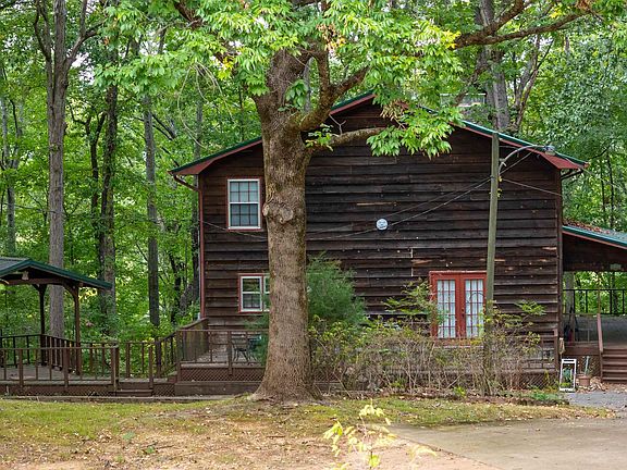 Nestled on 5.8 wooded acres, this spacious log cabin offers a peaceful retreat with 4 bedrooms and 4 bathrooms across three levels. The large front porch invites you to enjoy the serene surroundings, while inside, custom built-ins add charm and functionality. The main level features a bedroom, while upstairs you'll find two additional bedrooms, each with its own bath. The finished basement includes a bedroom, full bath, den, and tile floors, providing extra living space. Surrounded by nature, this cozy home perfectly blends privacy and comfort.