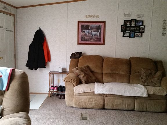 3 bed 2 bath manufactured home on 2.58 acres. Newer carpet in living room and Master bedroom. Master bedroom has master bath with 2 linen closets, walk in closet and also a den or possible 4th bedroom off the master. Brand new Furnace and A/C unit installed in January 2017. Wood burning fireplace. Septic system with aerator. Home Interior and outside property needs work. Selling home As-Is. Seller to do no repairs. No land contract or lease to own.