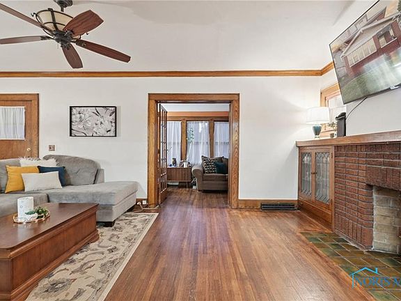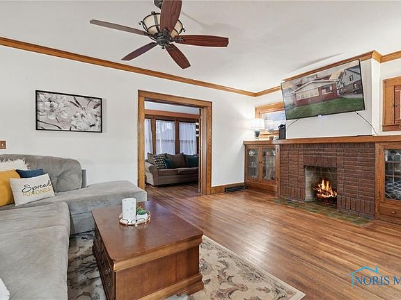 This charming home is full of character and appeal. Step inside to a spacious living area featuring a cozy fireplace, exquisite leaded glass built-in shelving, and beautiful hardwood floors. Enjoy the sunroom, filled with natural light streaming through a wall of windows and accented by elegant French doors, ideal for relaxing or your morning coffee. The updated kitchen is complete with stainless steel appliances & convenient breakfast bar. Formal dining room perfect for entertaining. Partially finished basement for extra living space & lots of storage. Enjoy the fenced in backyard with deck.