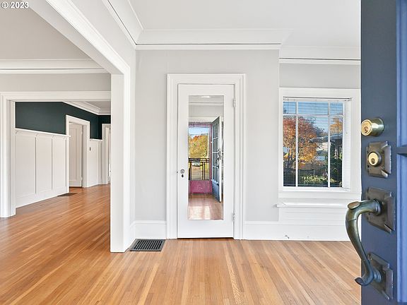 This charming Craftsman Bungalow is a perfect blend of old house charm and modern amenities. The main floor features an expansive foyer with divided lite windows, original oak floors, a vintage fireplace, thoughtful built-ins, coved ceilings with picture rail, and a formal dining room with wainscotting and a bay window. The updated kitchen has been opened up to the dining room and boasts quartz counters, a downdraft stove, intelligently designed maple cabinets, and a light filled SW facing eating nook.Both full bathrooms have been tastefully updated, featuring floor to ceiling tile and one has a deep jetted tub. The primary suite opens to the back covered porch, accessible by double french doors. It's a perfect private spot for a morning cup of coffee. All of this in one of Portland's most celebrated neighborhoods...Laurelhurst. Known for it's walkability to shops and restaurants, brimming with historic homes, and with excellent access to world class Laurelhurst park, it's no wonder everyone wants to live here. [Home Energy Score = 4. HES Report at https://rpt.greenbuildingregistry.com/hes/OR10223891]