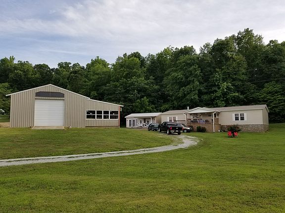 Tennessee country home, land, creek, shop, and additional bonus building. Located in Southern Wayne County TN between the cities of Waynesboro and Collinwood. The 3 bedroom, 2 bathroom specially designed handicap friendly home is 28 feet x 70 feet with solid rock foundation. Each of the 3 bedrooms have a large walk-in closet. There is a 10 x 20 enclosed sun-room added onto the rear of the home and a 10 x 20 large covered front porch overlooking the vast front yard and creek. The home has large kitchen with oak cabinetry and an island. The living room has a fireplace. Home has central heat and air (electric). Home has a heavy gauge metal roof (2012) Beside the home is an enclosed 24 x 24 additional bonus building with covered porch. Nearby the TN home is about a 48 x 50 enclosed large shop building with double roll up doors and windowed lean-to extension on one side, The shop building has a concrete floor and a wood floor on the lean-to addition. This is all located on 3.62 Tennessee acres of which about 1/2 is in grass land and the rest is in timber and building site areas. There is also a beautiful, year around running crystal clear spring fed creek on the land as well. Home, shop and additional bonus building is completely fenced with two vehicle gates and one pedestrian gate.