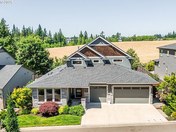 Discover a rare blend of elevated design, modern comfort, and refined functionality in this exceptional 3-bedroom + office, 2.5-bath home, nestled in the desirable Clover Hill neighborhood of Ridgefield. Thoughtfully curated and meticulously maintained, this residence offers over-the-top finishes, versatile living spaces, and seamless indoor-outdoor integration—perfect for both everyday living and elegant entertaining.Step into the expansive great room with a stone surround gas fireplace, high ceilings, transom windows, and double sliding patio doors leading to a custom metal-screened patio—complete with a second gas fireplace and built-in speakers. The entertainer’s kitchen is a showstopper, boasting a 9-foot+ quartz island, Professional Series 6-burner Viking range, double ovens, pot filler, farmhouse sink, floating shelves, full tile backsplash, and custom wine storage with a wine fridge. All perimeter cabinetry is drawer-based, maximizing storage and accessibility.The primary suite on the main level is a serene retreat, featuring a coffered ceiling with LED lighting, a spa-inspired bath with heated floors, fully tiled walk-in shower with dual heads, double anti-fog LED mirrors, and a custom walk-in closet with direct laundry access.Upstairs, a spacious bonus/family room with surround sound complements two additional bedrooms, both enhanced with sliding barn doors, custom blinds, and access to a beautifully appointed full bath.Enjoy Ridgefield’s mild climate and natural beauty from the well-manicured flat backyard, complete with a retaining wall, raised garden beds, herb garden, 10 Japanese maples, and a historic Joe’s Place Farms apple tree—a living piece of Clark County history. The home also offers electrical in all exterior eaves with LED strip lighting, 4 storage sheds, a 3-car garage (with one bay flex-ready), and pre-plumbed gas/electric for a future outdoor kitchen.Minutes from downtown Ridgefield, top-rated schools, and acclaimed dining.