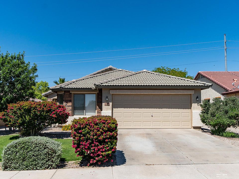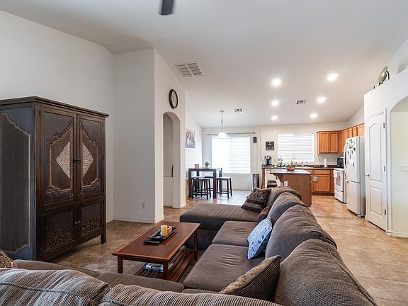This property is a wonderful find! home has been well-maintained and cared for by its original owners; offering 1 year home warranty paid by seller. The spacious split floorplan with vaulted ceilings and upgraded features add to the overall appeal. The absence of carpet and the use of hardwood flooring in the bedrooms and tile in the open concept living area can provide a modern and low-maintenance living experience. The fully landscaped backyard also offers a great outdoor living space, which is especially appealing in the growing city of Buckeye. It's always exciting to come across a well-kept property with attractive upgrades that enhance both the living space and the overall value of the property.