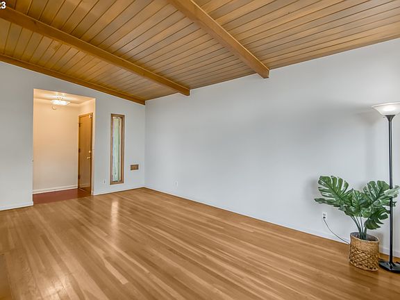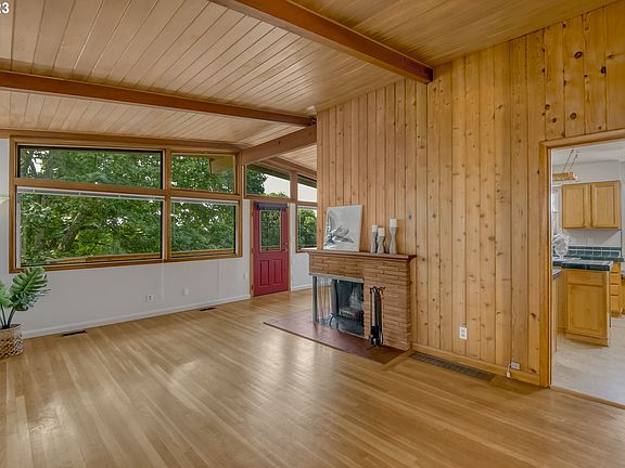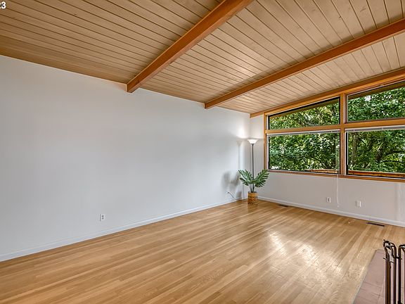 Don't let the exterior stop you from checking out the wonderful things this home has to offer. Main floor with hardwood floors and wood ceilings provide an ambiance that is warm with a rustic charm. Comfortable and inviting. Kitchen with newer (about 1yr) marmoleum floors give it an earthy feel. Island, built-in bench seats. Convenient laundry chute in main bath. Basement can be accessed through the house or through the exterior making it ideal for multi-generational living. Lots of storage cabinets. Primary bedroom opens to a beautiful backyard with herb garden, spacious deck with a privacy fence and a spot that is wired for a hot tub to complete your zen-like space. The driveway is long and deep and will allow for an RV. 30amp available. Enjoy the territorial view from the kitchen and deck. Close to Reed College and just a mile to Eastmoreland golf course. Priced well to allow for your little updates and touches.