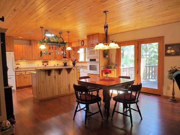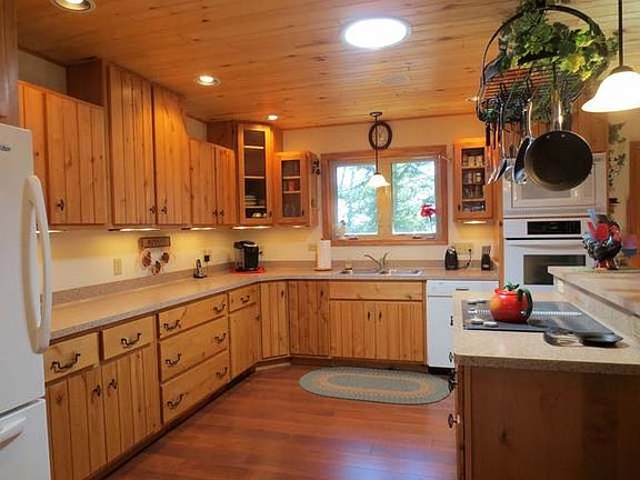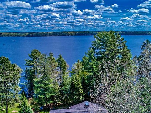 2005 custom built home located on Moen Lake of the Moen Lake Chain has the perfect floor plan and offers the following features: Custom made cabinets in kitchen and 2 baths, aspen ceilings that came from the trees on the lot, gorgeous wine bar with matching entertainment cabinet with surround sound, cultured stone fireplace, generator hook-up, master bedroom suite with views of the lake framed with large windows, snack bar, main floor laundry. The lower level offers a family room with deck doors leading to the nicely landscaped patio and hot tub area, work space with built in cupboards, 2 additional rooms that can be used as bedrooms/den/office (no ingress/egress windows). The 2 car garage has extra storage, is heated, insulated and has cabinets. Exterior of the home has additional lighting along walkways, decks and pier, in ground watering system, natural gas to grill and a lakeside tiki deck great for an afternoon beverage and time to enjoy the spectacular views and gentle breezes.