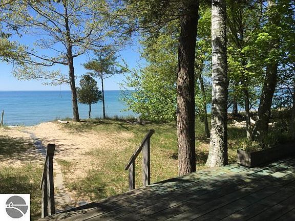 220 feet of walk-right-out, LAKE MICHIGAN frontage!!! Very, very private and secluded. A true nature-lover's home back in the woods at the very end of a private road but just minutes from Manistee. 4 Bedrooms plus 2 lofts for the kids/grandkids, 2 1/2 bathrooms and a shower on the deck. Master suite on the main floor offers easy living if needed. Nice, high ceilings and very open feel. You'll love the enclosed porch off the kitchen for even more extra space. The basement has a great cement floor, workshop and a washer and dryer ... and can be accessed from inside or outside the house. Electricity is buried. And there's a 200' steel seawall that's buried at the steps. Natural gas furnace and extra electric heat. Metal roof.