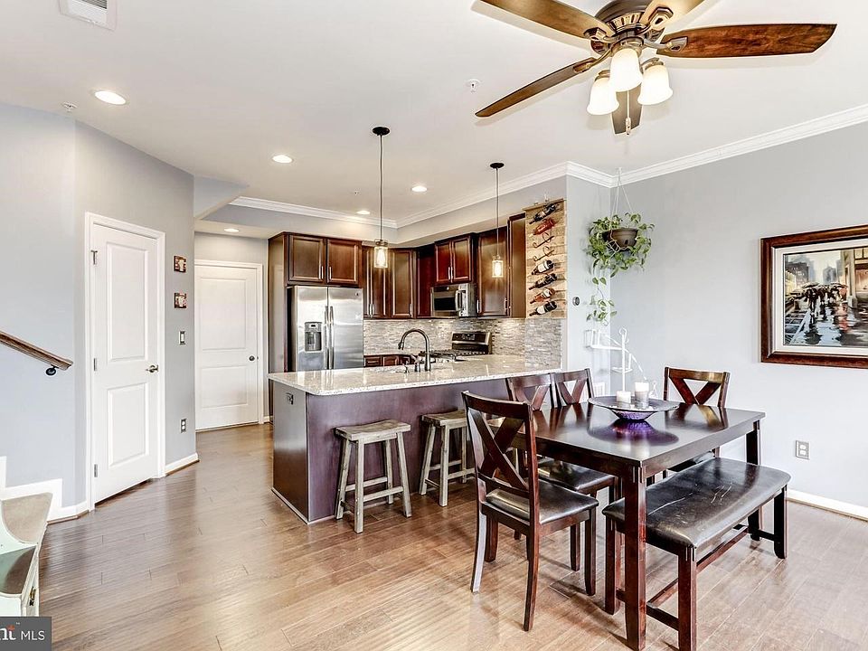 Awesome Condo in the Community of Loudoun Crossing! Excellent location in an amenity rich community, great pool, tot lots, trails, clubhouse, fitness room, and tennis courts. Tons of Natural Light throughout the Open floor plan, with 3 bedrooms and 2.5 baths. Upgrades galore from top to bottom to include, Granite Counter Tops, Custom Kitchen Back splash, Crown Molding, Upgraded Kitchen Appliances, Custom Trim, Wrought Iron Stair Balusters, and so much more! Generous master suite with Walk-in closet and large master bath with Roman Shower. Washer and Dryer are super convenient on the bedroom level. Excellent shopping restaurants projected for location in community. Award winning schools and very easy access to multiple commuter routes, to include the future metro!