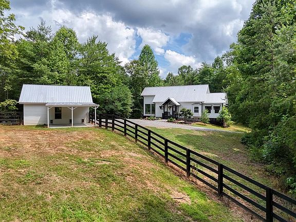 Modern Farmhouse that exudes character & charm on 14 PRIVATE acres within minutes of Blue Ridge, McCaysville or Murphy NC. Beautifully landscaped property with creek meandering as you enter the gated entrance. Home has bright & cheery sun room that would be the favorite spot for your morning coffee and evening cocktails. Open concept with many options for design. Many updates such as new A/C units, tankless water heater, Hardi-plank exterior (concrete board), Fiber optic Internet, new vanities in bathrooms, HUGE walk-in closet in primary bedroom & freshly painted throughout. The fenced areas are perfect for those with farm animals or pets. If you desire MORE ACREAGE, the adjoining 17.6 acres is also available (separate listing) for total of 31.6 acres. LOW LOW TAXES as it has State Conservation Use Restriction that expires in Dec 2027 (this can be removed for approx 5k if want to clear the land, or use as STR). So much to offer Fantastic Price!