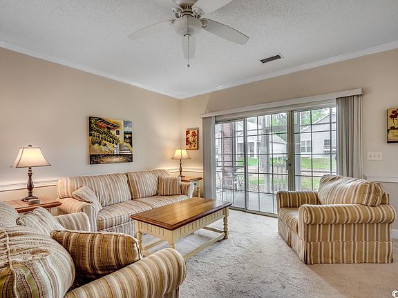 Welcome to The Gardens at Cypress Bay! This fully furnished and equipped ground floor, corner unit boasts two bedrooms and two bathrooms, perfect for comfortable living as a primary residence, second home, or investment property. The unit has been well maintained and features tile floors in the kitchen and bathrooms, as well as carpeting in the living areas and bedrooms. You'll appreciate the abundance of natural light throughout the unit, thanks to its high ceilings and prime location. Step outside and relax on the screened-in porch, perfect for enjoying the weather. The owners' suite offers ample storage space with a walk-in closet, while the chair rail and crown molding add an elegant touch to the interior design. Don't miss out on this wonderful opportunity to own a piece of paradise in the Little River area of South Carolina. All this and just a few miles to the Cherry Grove section of North Myrtle Beach!